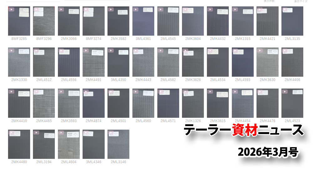 2026年新春1月号テーラー資材ニュース_オーダーネクタイ絶好調、冬の定番アイテムカシミアマフラーや26年春夏バンチブックについて、などなど