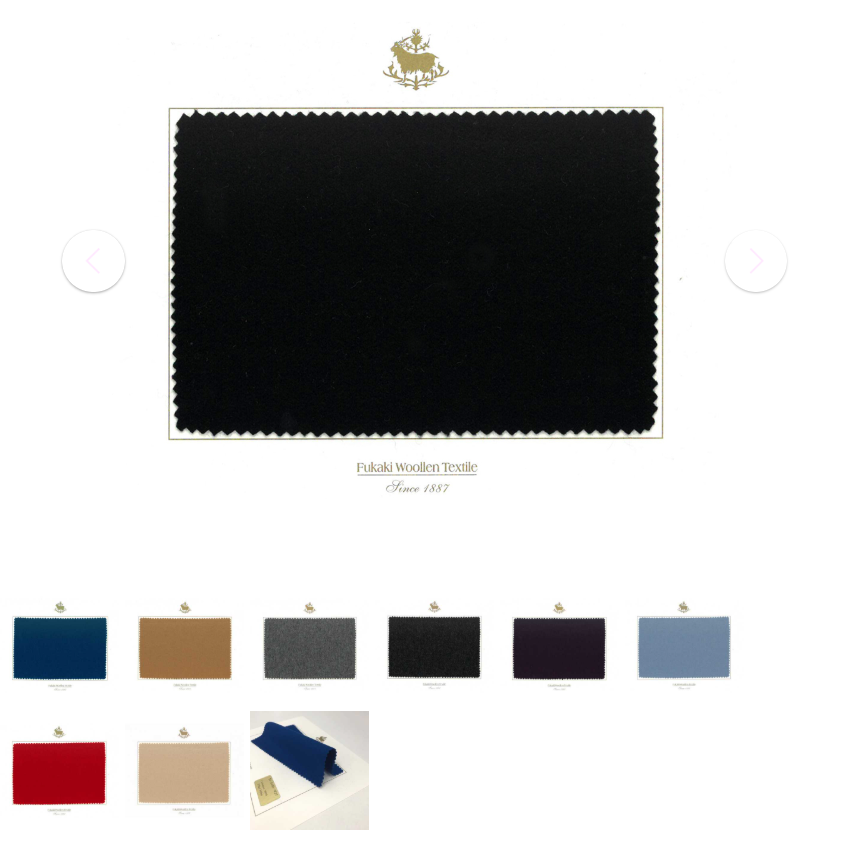 言わずと知れた国際的にも高く評価されている国内有数のカシミアメーカーFUKAKI。現在は生地の販売業務を三喜商事さんに委託され展開しております。品番がギュッと縮小されましたが、根強い人気ですね。