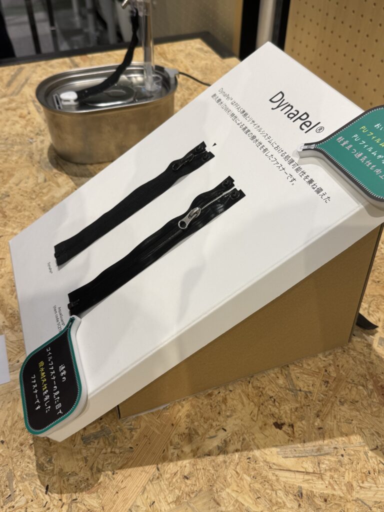 ファスナーの上を水が滑り台のようにつるっと滑る様子が絶妙な展示をしていたDynaPel®