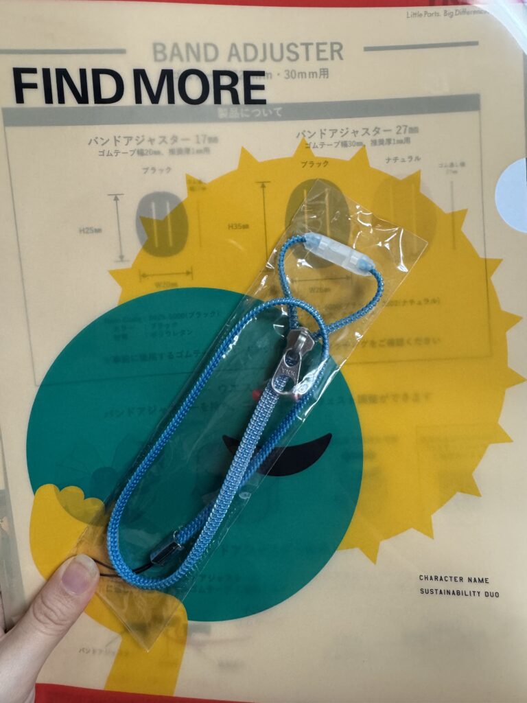 実際に触ってみると、手で曲げられるほどの柔らかさのアジャスターで滑りやすさを感じることができました。(*使用するゴムにもよる)アウトドアの製品やカジュアルウェアな様々な用途に汎用性のあるアジャスターです。規格は17mmと27mmあり、カラーはブラックとナチュラルの2色展開です。