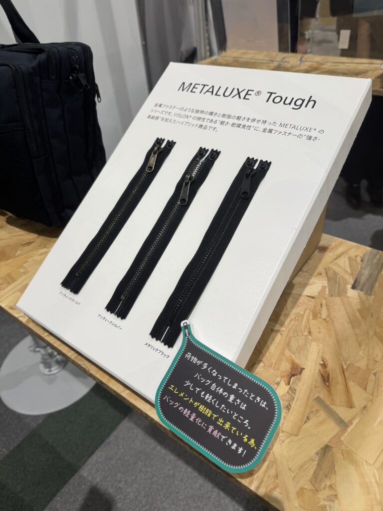 樹脂素材の軽さと金属の高級感のいいとこ取りなMETALUXE® Tough。VISRONファスナーよりも66%強度がアップしているそうです。