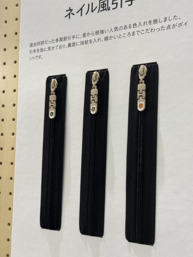 ネイル風引手、毛の絡まりにくいペット用の面ファスナー、産業用の自走式ファスナーなど繊細なこだわりやアイデアの詰まった1つ1つのアイテムがとても興味深かったです。